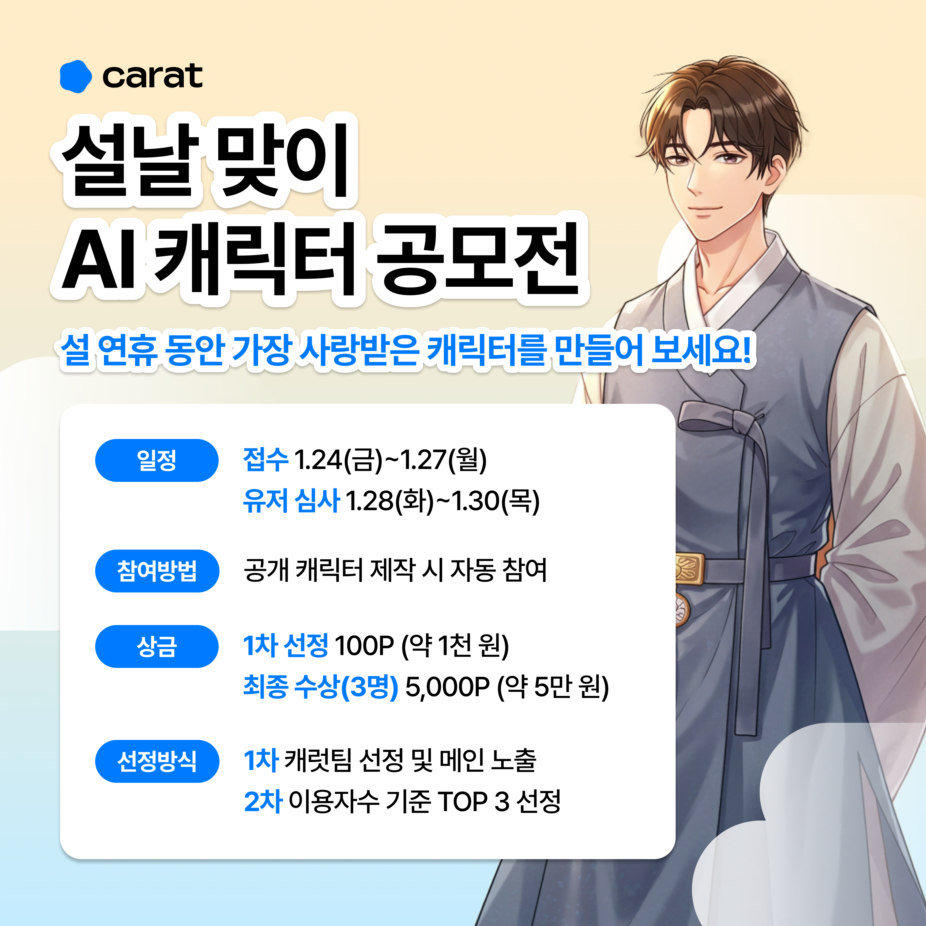 설날을 맞이하여 캐럿의 첫 번째 AI 캐릭터 공모전을 진행합니다.