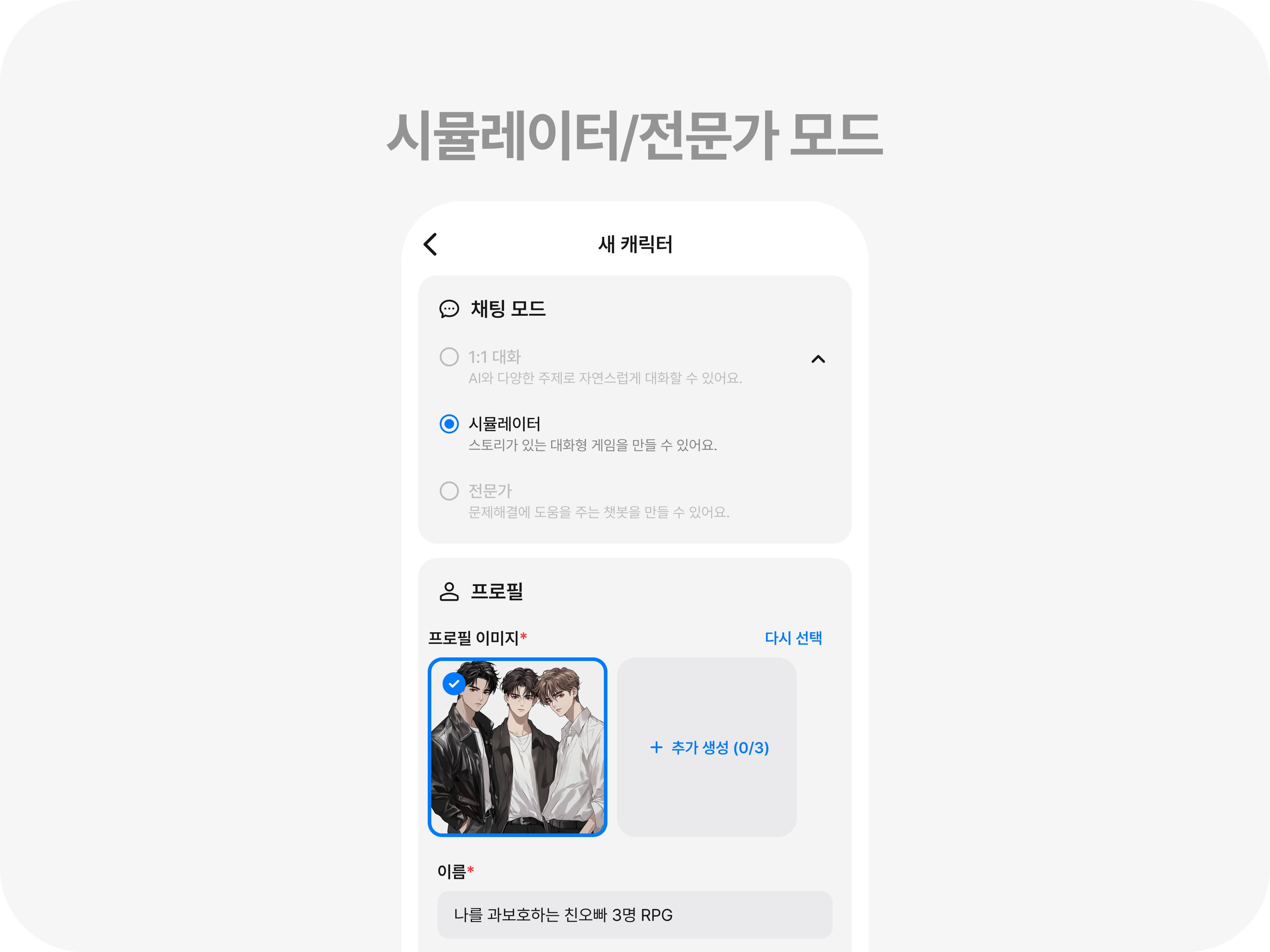 기존 '1:1 대화' 외에 두 가지 모드가 새롭게 추가되었습니다.