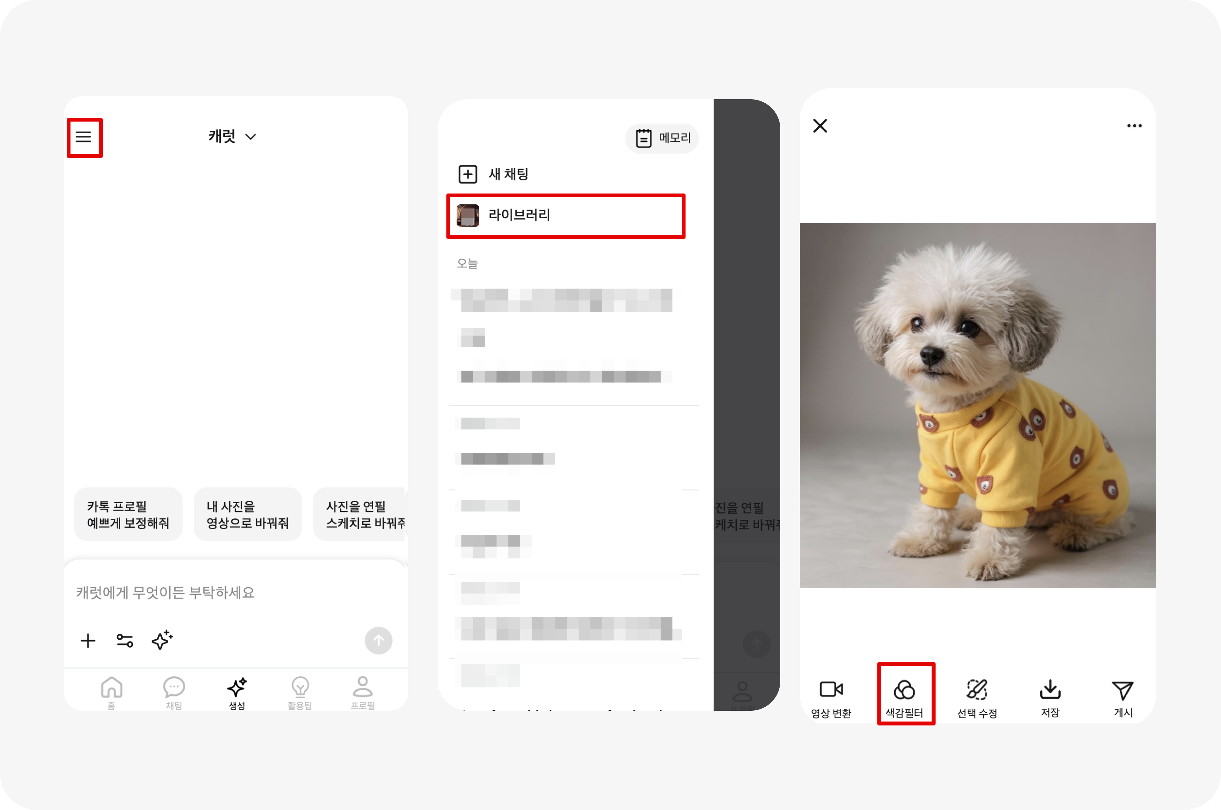 채팅창 좌측 상단 ☰ > 라이브러리 클릭