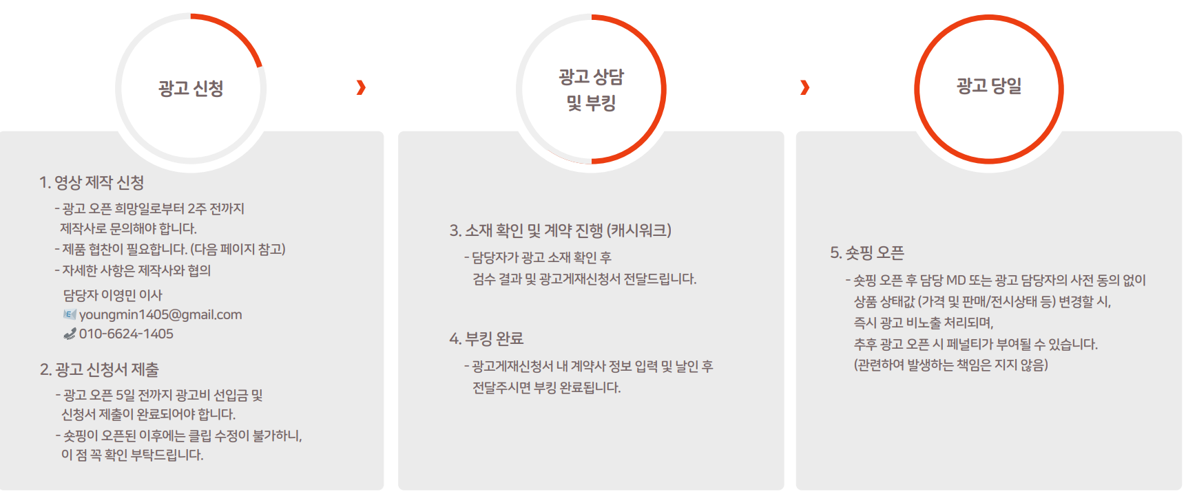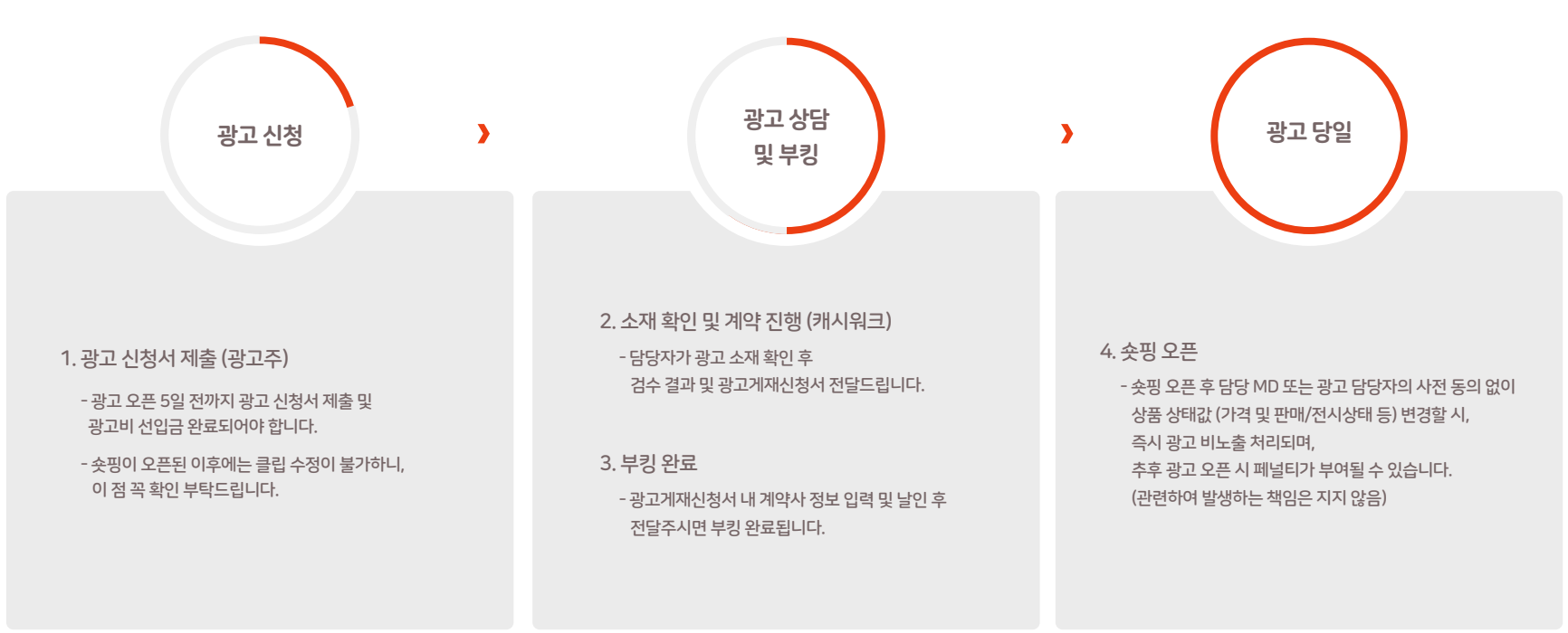 광고 오픈 5일 전까지 광고비 선입금 및 신청서 제출이 완료되어야 합니다.