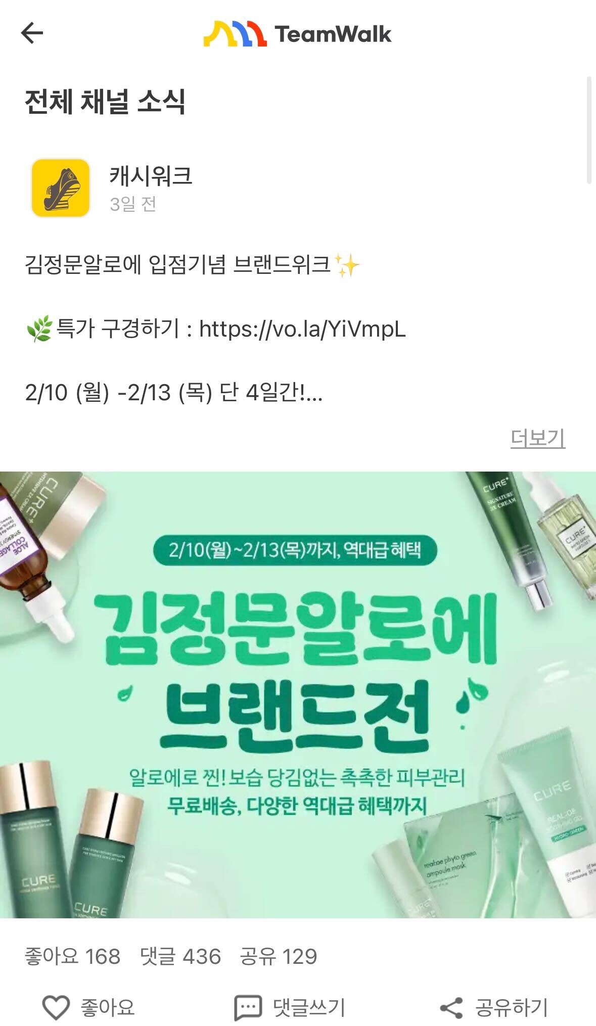 캐시톡 메시지 (캐시워크 - 캐시톡 발송)