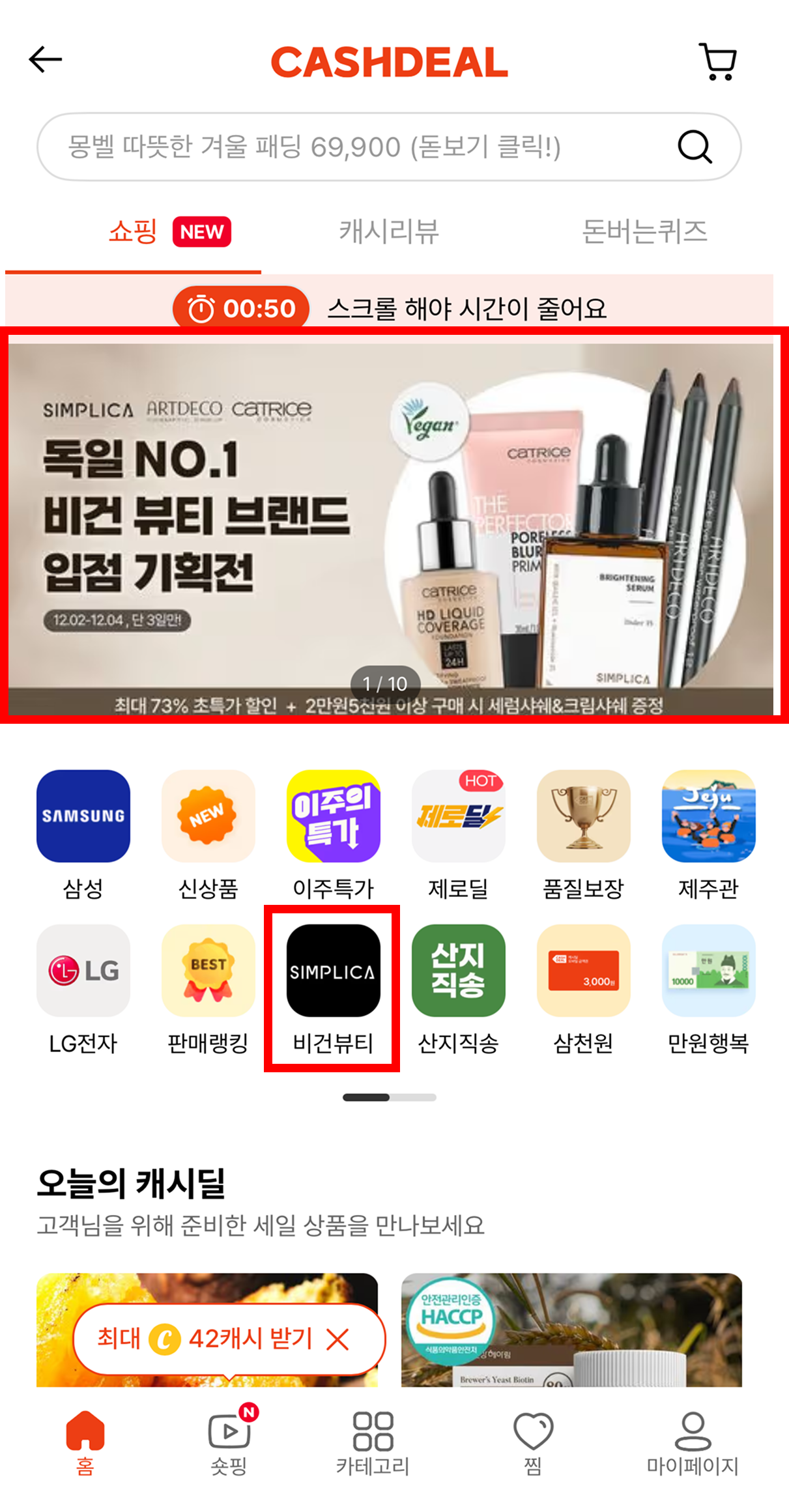 브랜드사가 운영하는 전체 상품 진행 및 캐시딜 단독 최저가를 제공해주세요.