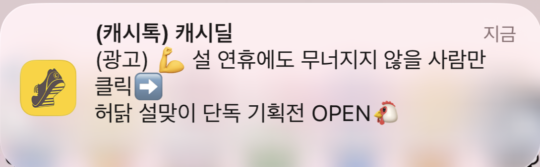 캐시톡 메시지는 발송 시 캐시워크 앱 푸시도 함께 발송됩니다.