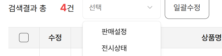 여러 상품의 판매 설정 또는 전시 상태를 한 번에 바꿀 수 있습니다.