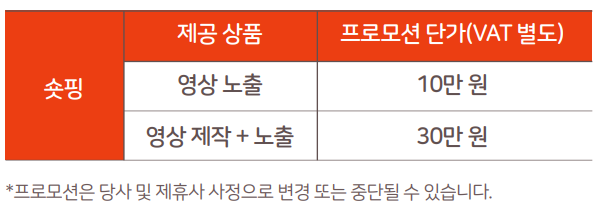 영상 제작 미포함 상품 할인가 : 60만원 → 11만원 (vat 포함) / 신청 건 당