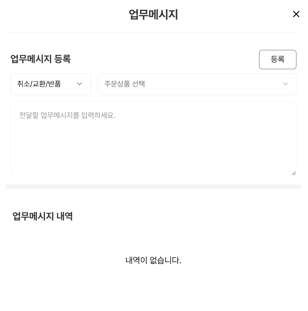 업무메시지는 주문이나 클레임을 처리하면서 내부적으로 메모를 남기는 기능입니다.고객에게는 노출되지 않으며,셀러와 운영 담당자 간의 업무 공유·이력 관리 용도로 사용됩니다.