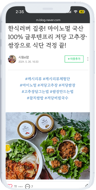 '저당 다이어트 소스' 키워드 인기글 탭 2위