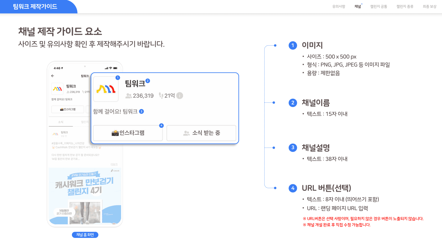 걸음수 챌린지를 개설할 때에 필요한 정보입니다.
