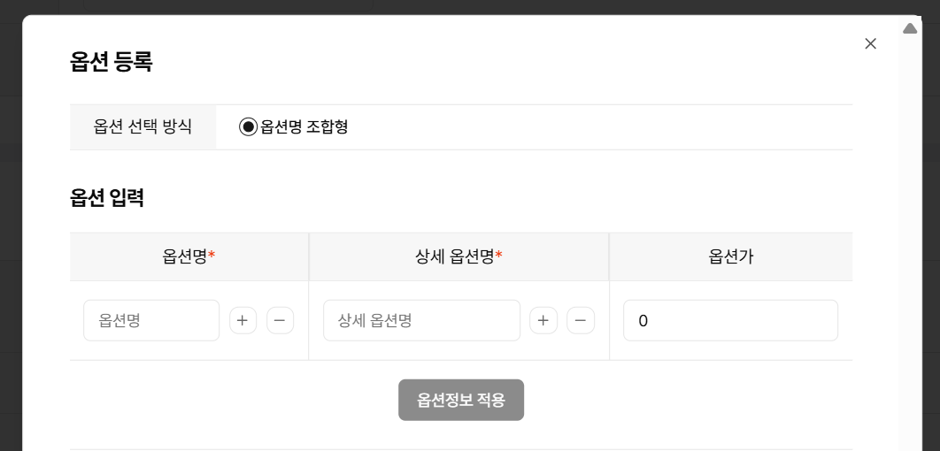 옵션 선택 방식은 "옵션명 조합형"으로 자동 설정됩니다.