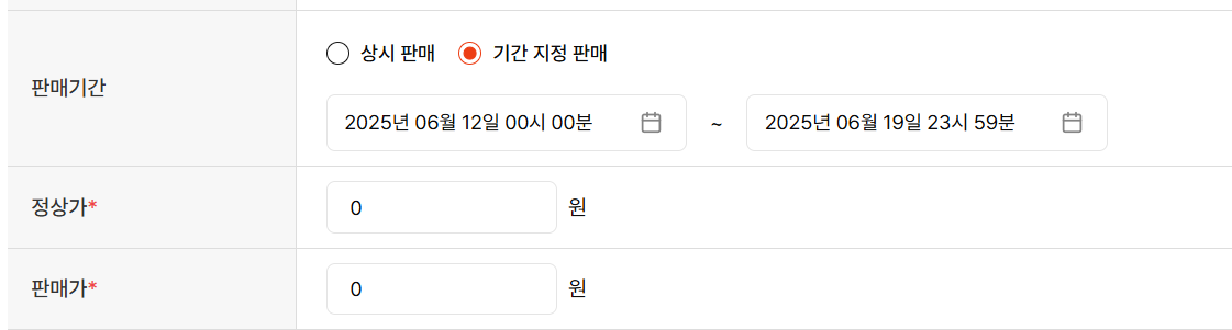“판매기간 > 상시판매”로만 설정