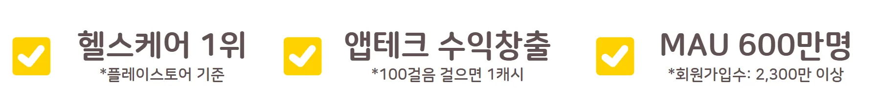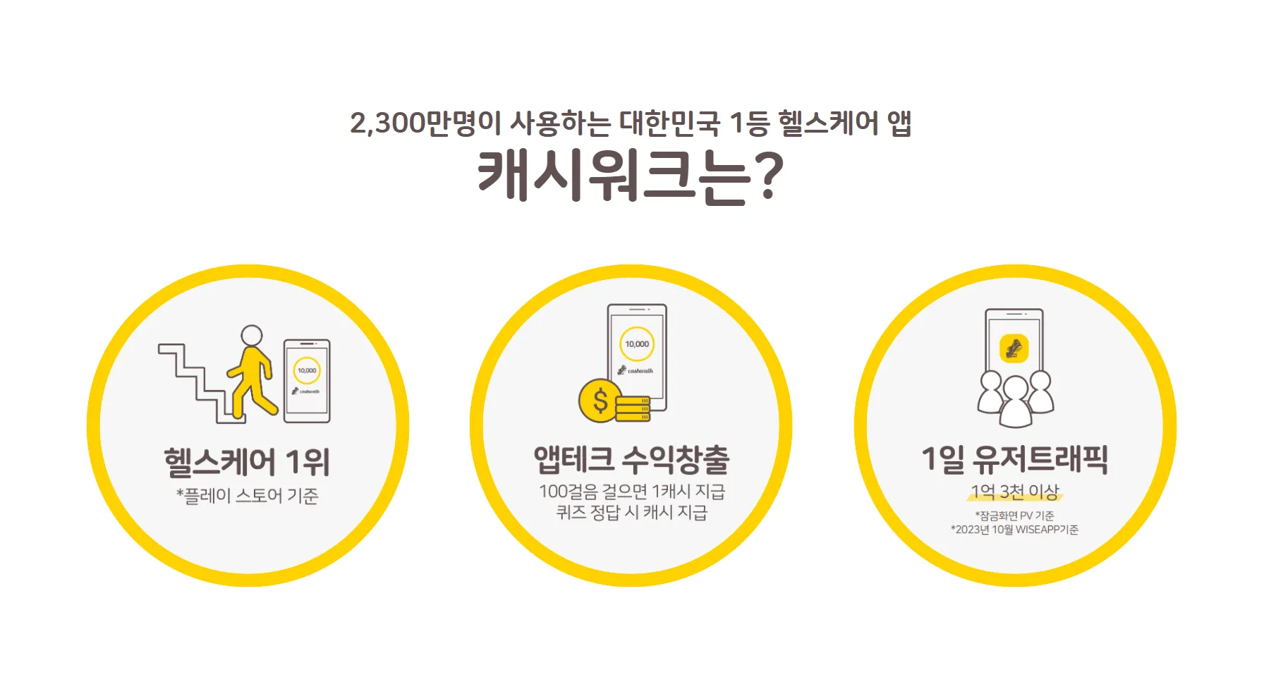 캐시워크는 플레이스토어 헬스케어 카테고리 1위 & 회원가입수 2,300만명을 돌파한 혁신적인 헬스케어 APP으로, 귀사의 비즈니스 성과를 높일 수 있는 다양한 광고상품을