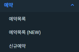 좌측 화면에서 [예약] 탭 통해 일자 별 예약 정보 확인이 가능합니다.