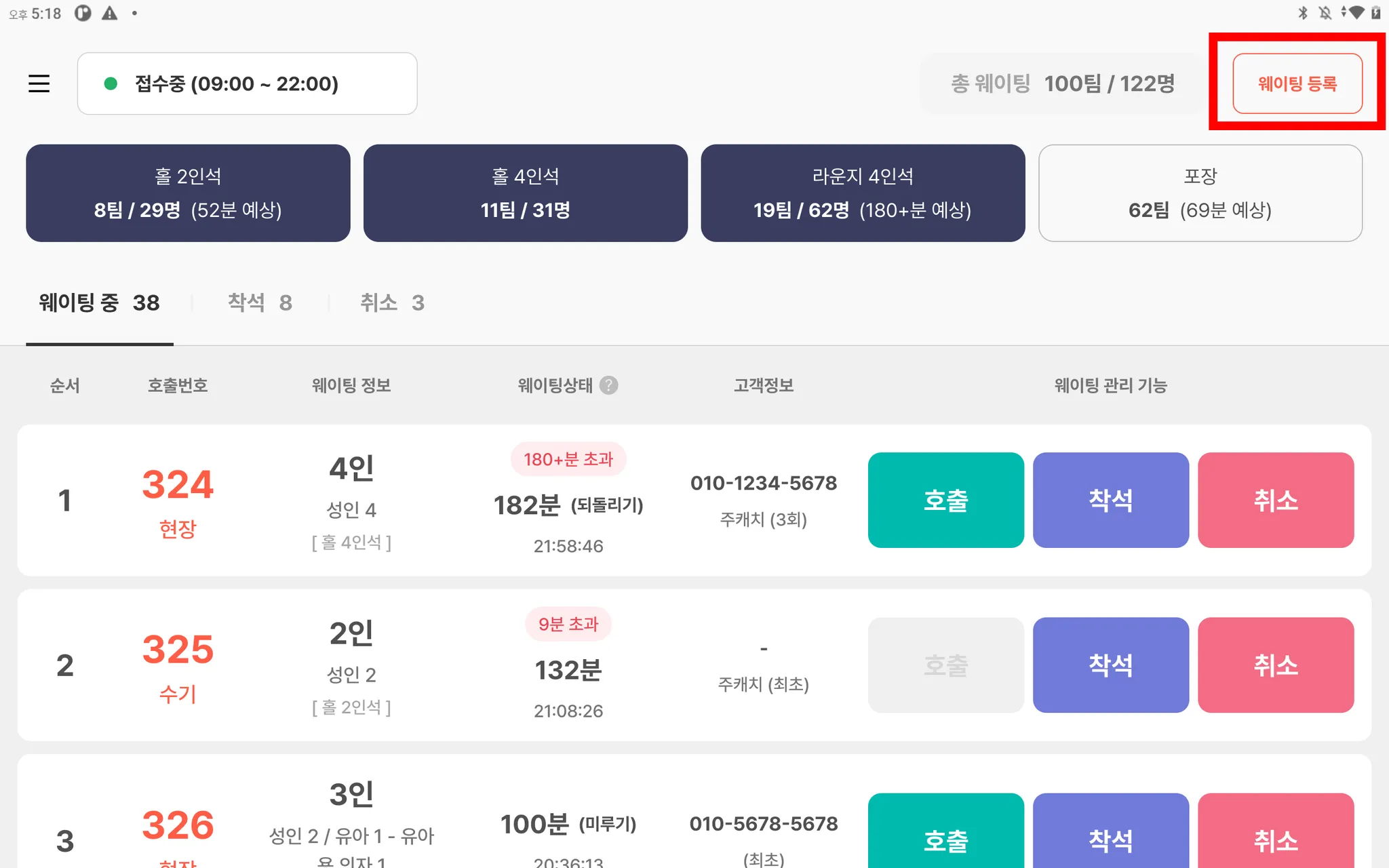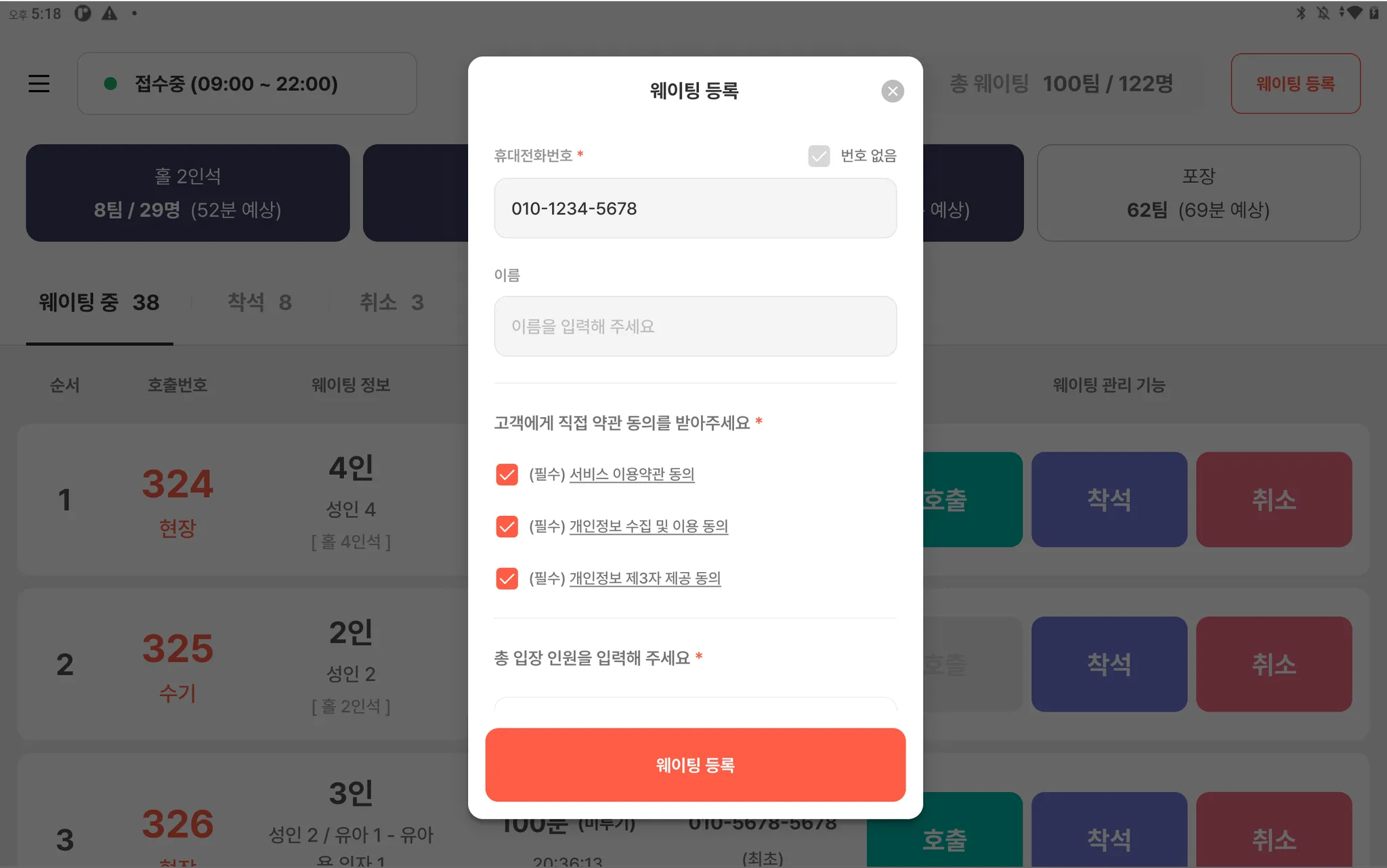 외국인 고객님 및 기타 고객님 웨이팅 건을 수기 등록하실 수 있어요!