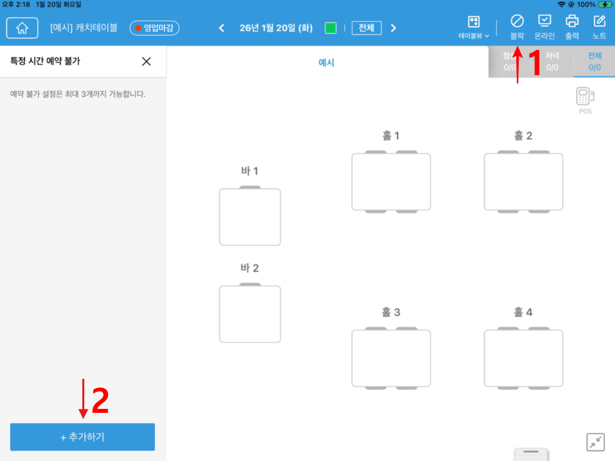 특정 시간의 예약 마감 처리가 가능한 테이블 블락 기능에 대해 안내드리겠습니다.