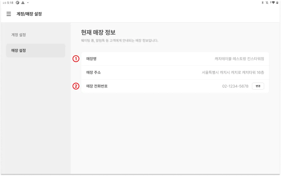 ⓶ 매장 전화번호 변경