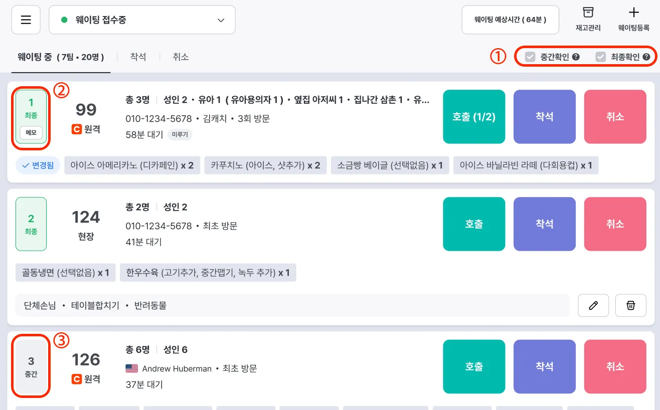 고객이 알림톡 버튼을 누르면 웨이팅 패드를 통해 확인 할 수 있어요.