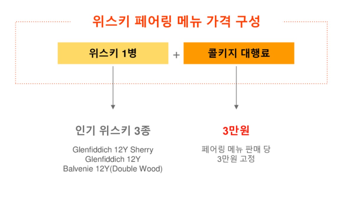 최종 고객의 결제 금액에서 위스키 매입액을 제외한 전체 금액 수익 확보 가능