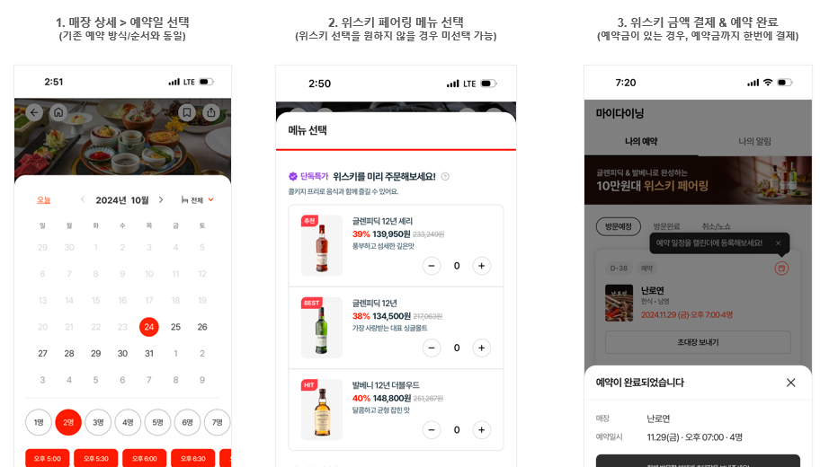 예약 과정에서 자연스럽게 위스키를 선택하고,