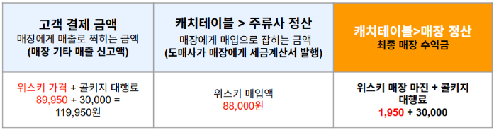 위스키 매입액은 캐치테이블이 도매사 측으로 대금 진행