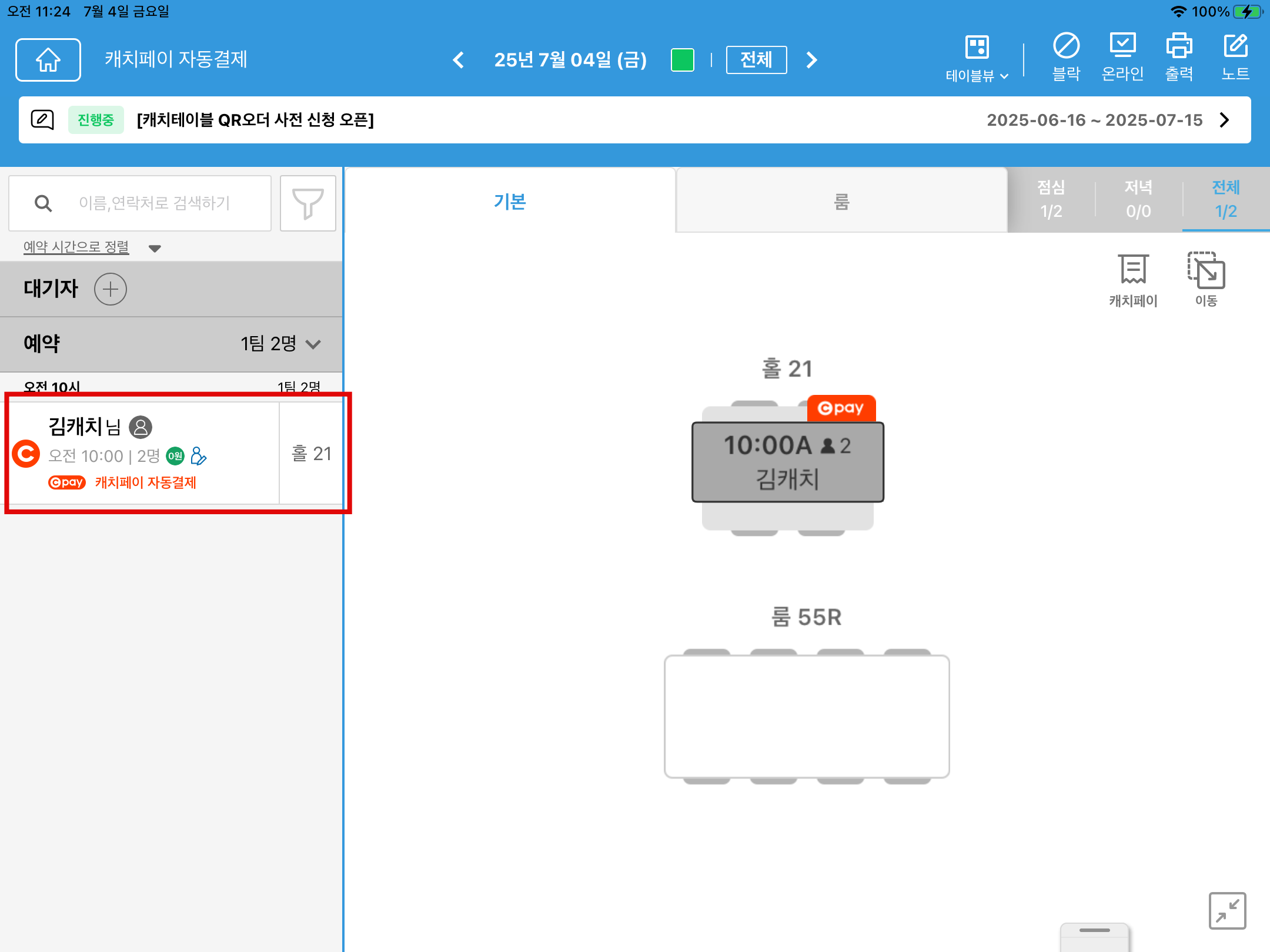 ※ 캐치페이 자동결제를 이용하신 고객님은 식사금액의 1% 할인이 적용 됩니다.