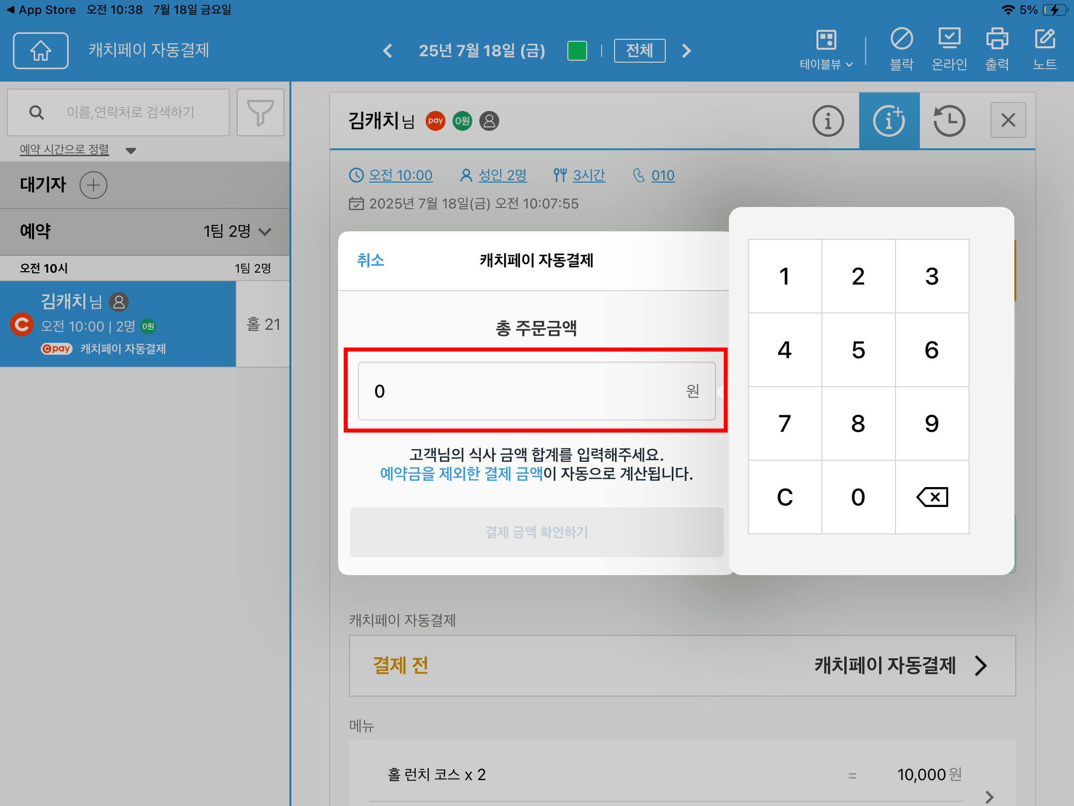 ※ 총 주문금액을 입력하면 예약금을 제외한 결제 금액이 계산됩니다.