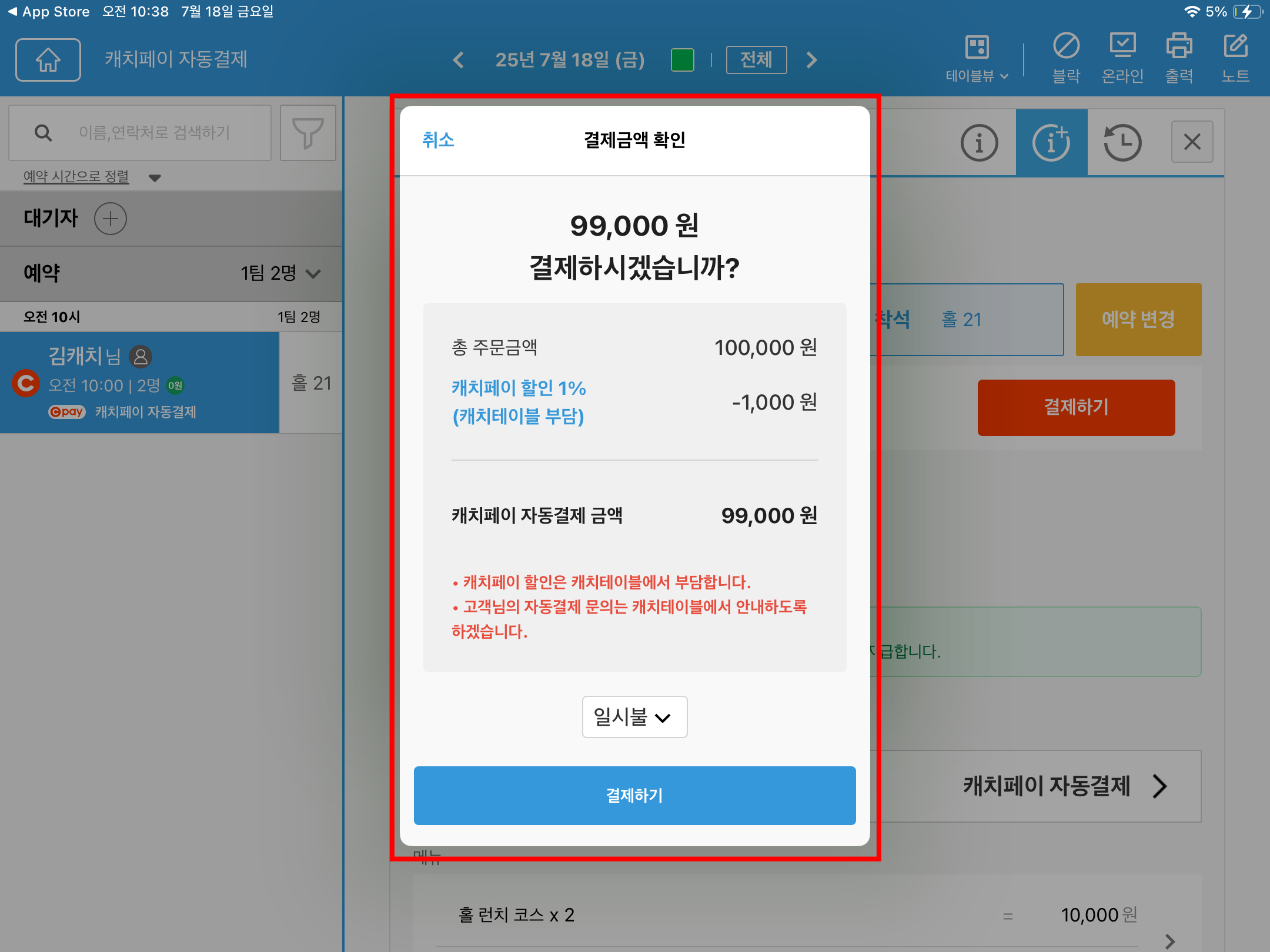 해당 할인 금액은 캐치테이블에서 부담하므로,