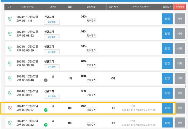 *기존 기능 사용 중이나 팝업 미노출 및 전화걸기 불가 시 고객센터로 문의해 주세요.