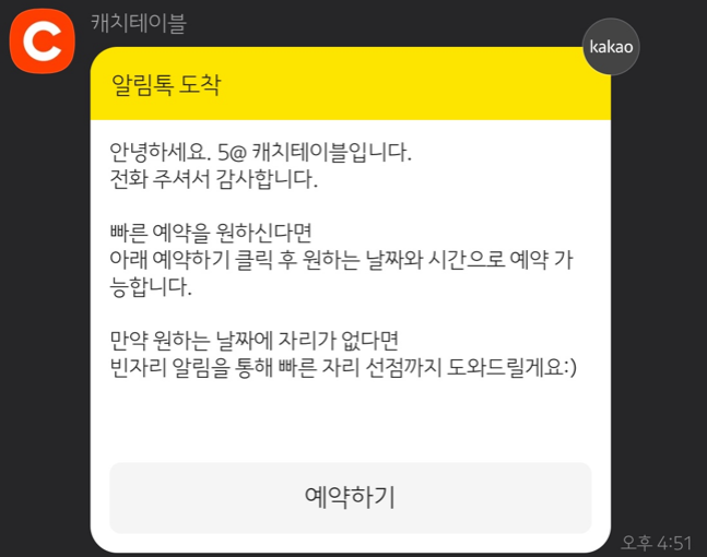 고객님께서 매장으로 연락 시도 시 부재인 경우, 고객님께 자동으로 알림톡이 발송됩니다.