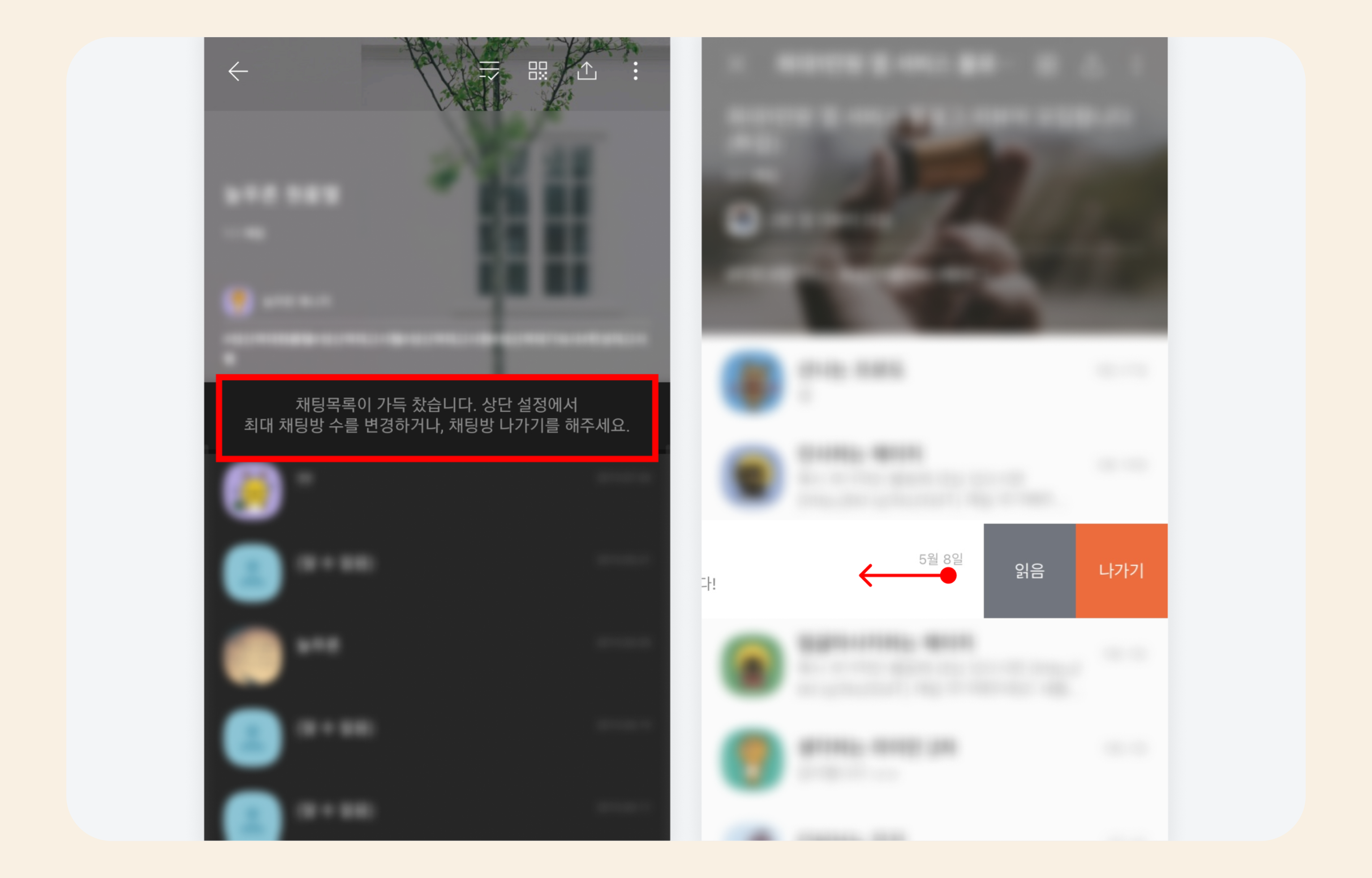 해당 메시지가 떴다면 더 이상 대화방이 열리지 않으니 주의하세요.