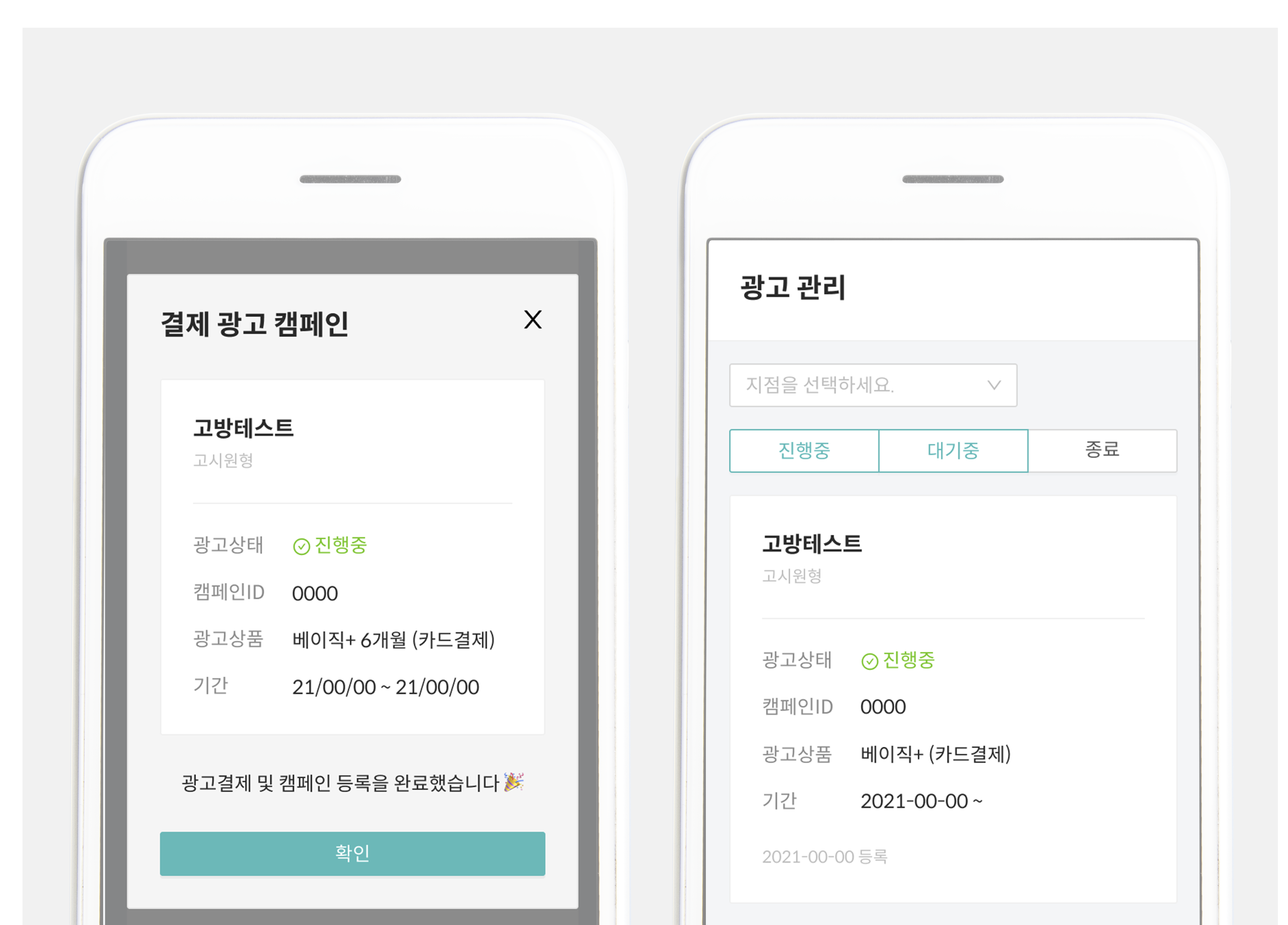 결제가 완료되면 광고상품이 자동으로 시작됩니다. 광고 진행 상태는 [U사장님]-[광고관리]에서 확인하실 수 있습니다.