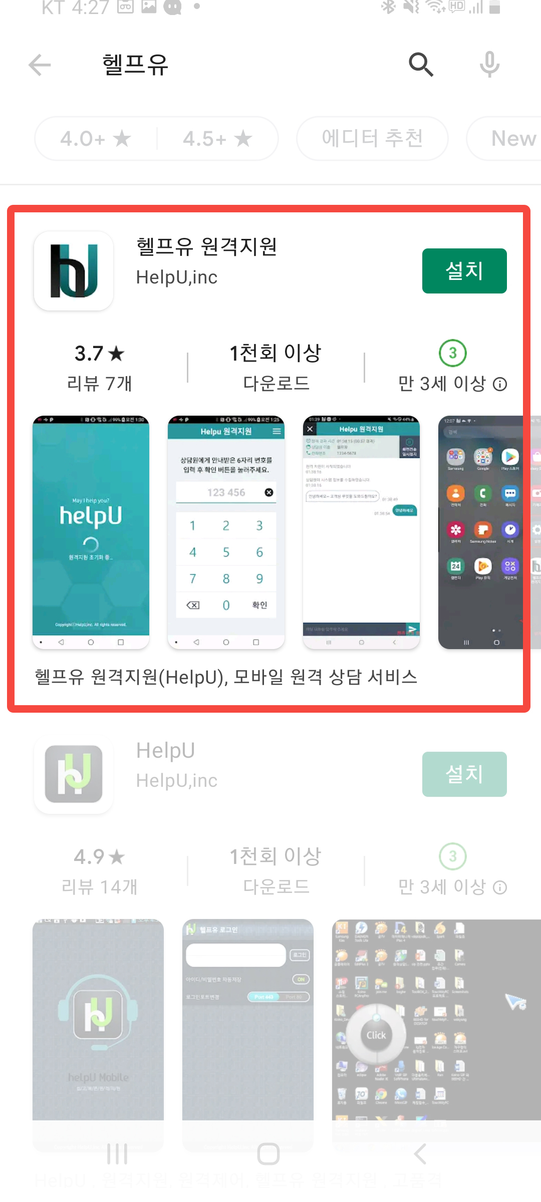 구글플레이스토어에서 Help U앱을 다운받습니다.