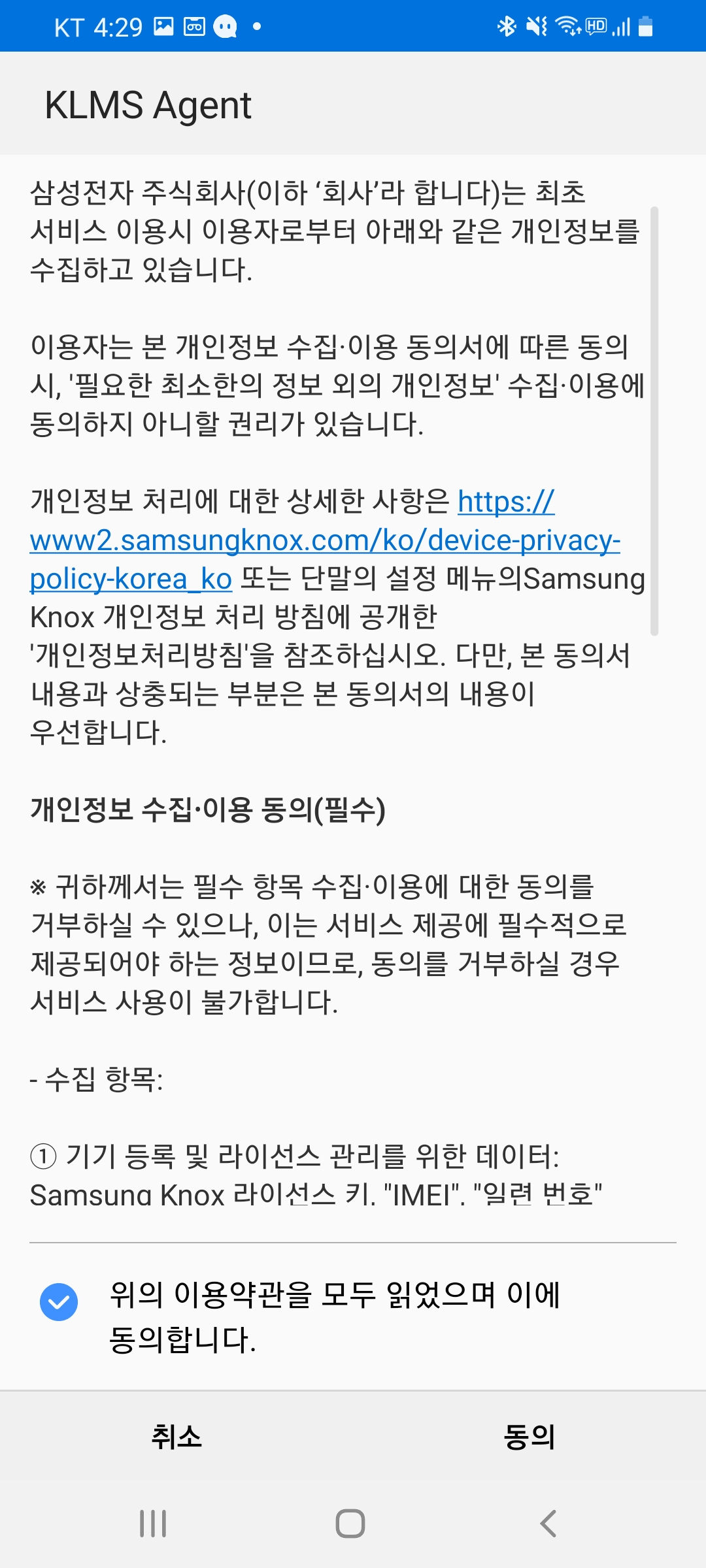 (※동의하지 않을 경우 HelpU앱이 정상 실행되지 않습니다)