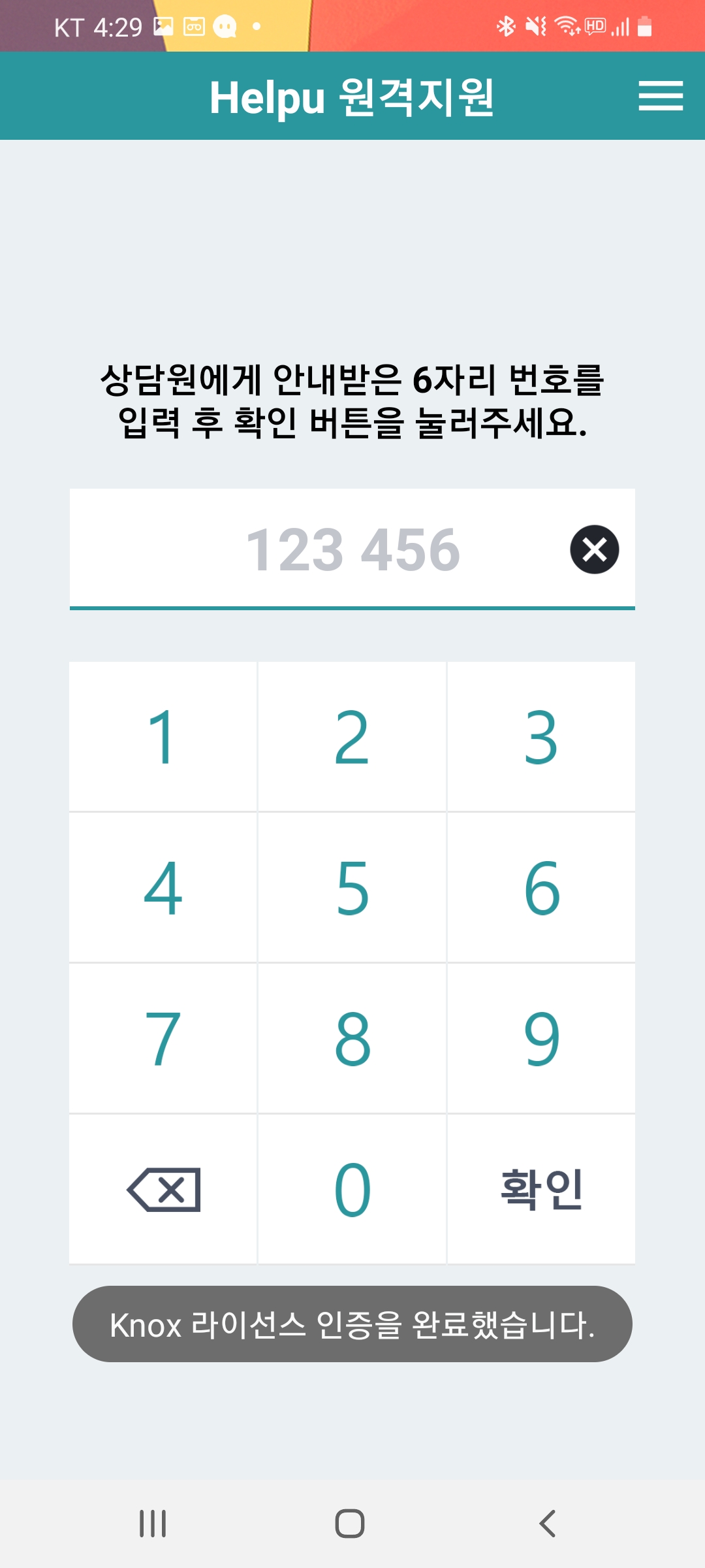 원격지원자가 원격인증암호를 알려준 경우, 원격지원암호 입력을 통해 원격지원을 시작할 수 있습니다.