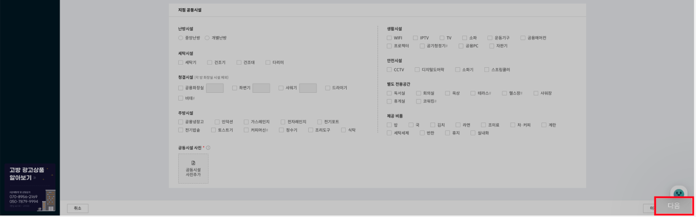 이렇게 방 정보를 모두 입력하고 나면, '다음'으로 넘어갈 수 있습니다.