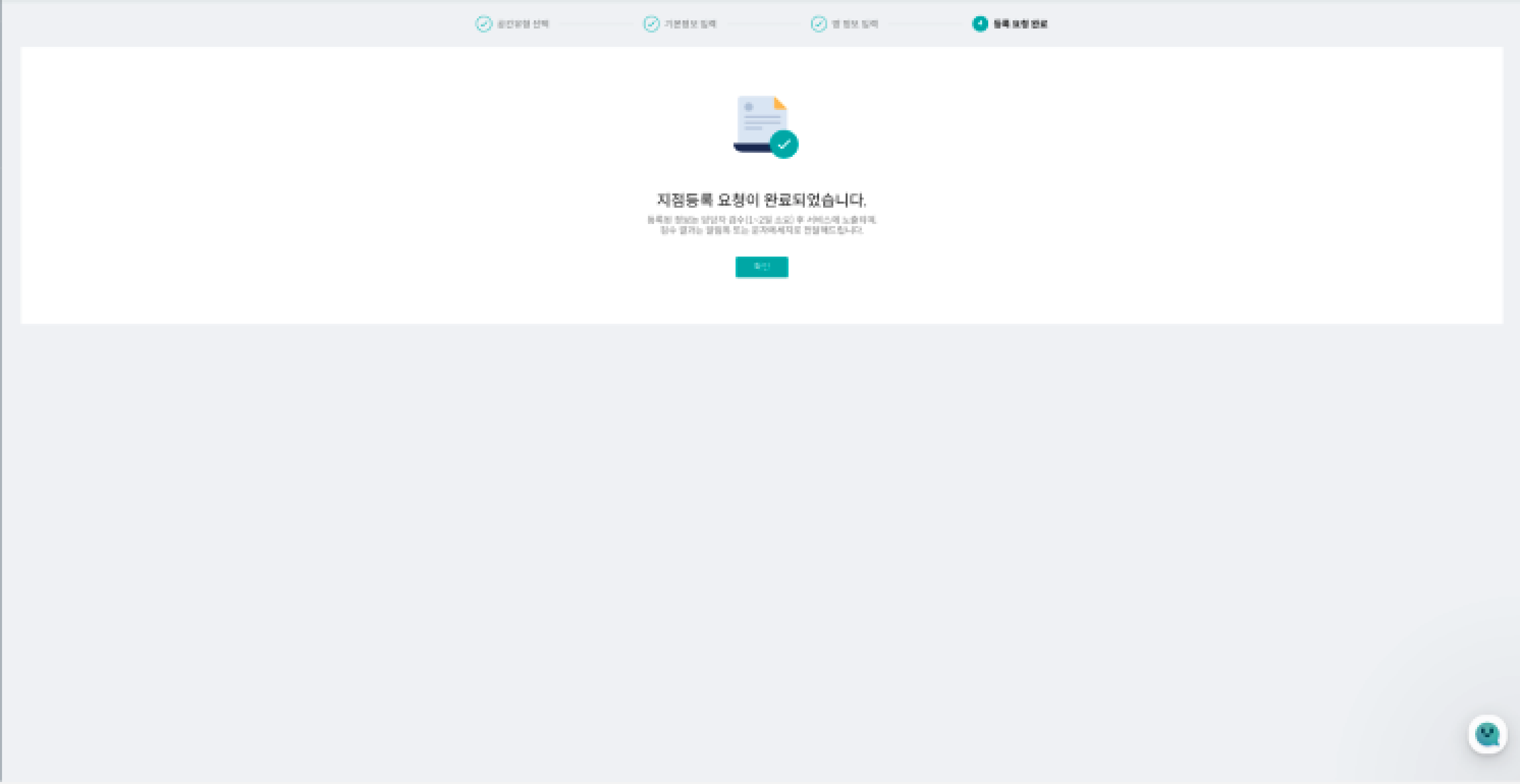 '다음'버튼을 클릭하면 다음과 같은 안내창과 함께 지점등록이 완료됩니다.