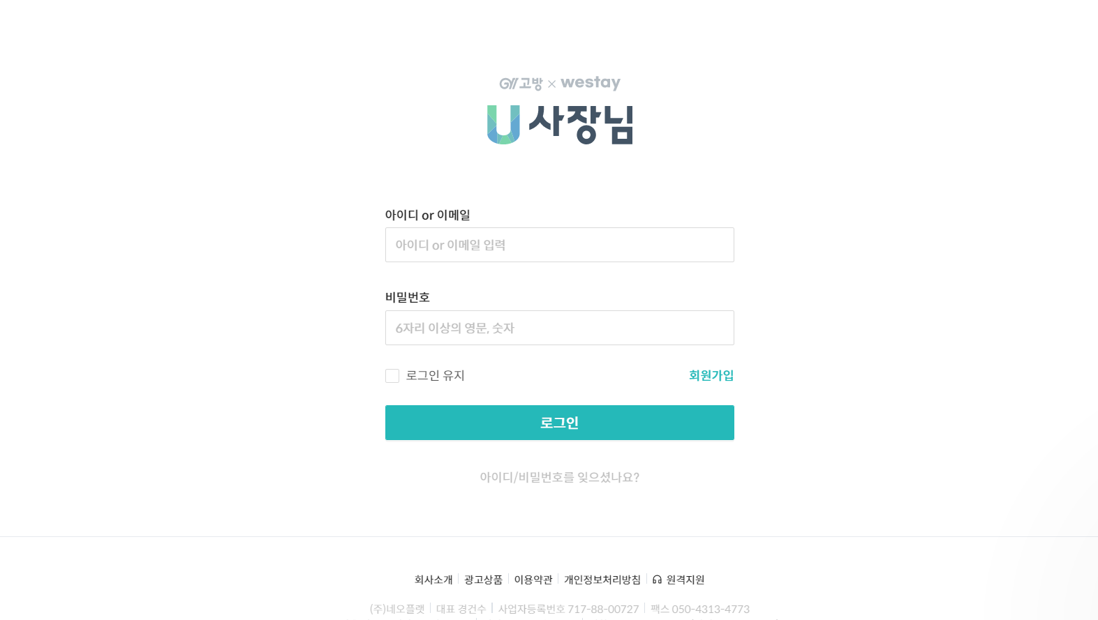 고방 리뷰 신고를 위해 사장님 전용 사이트인 ‘U사장님’에 방문합니다.