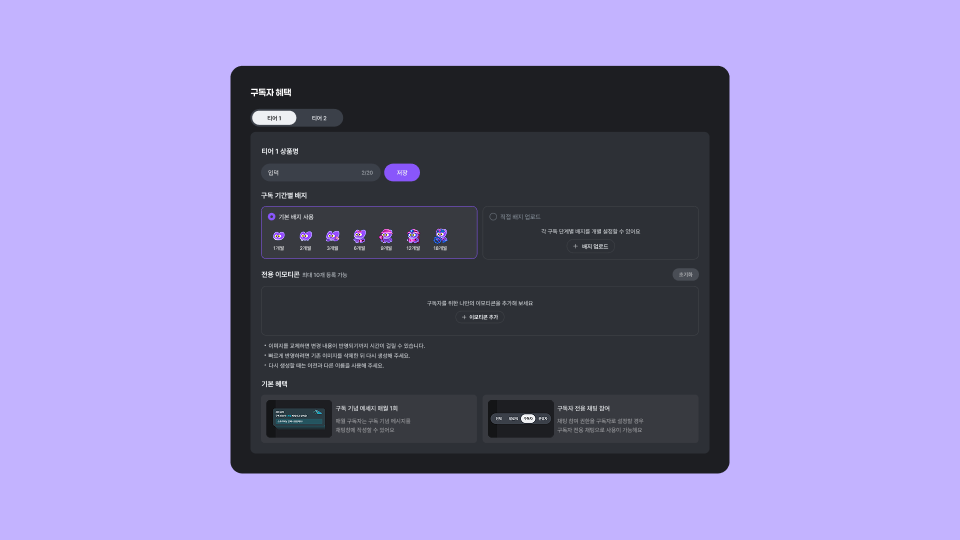 씨미 스튜디오의 [시청자 관리] → [구독자 혜택] 메뉴를 확인해보세요.