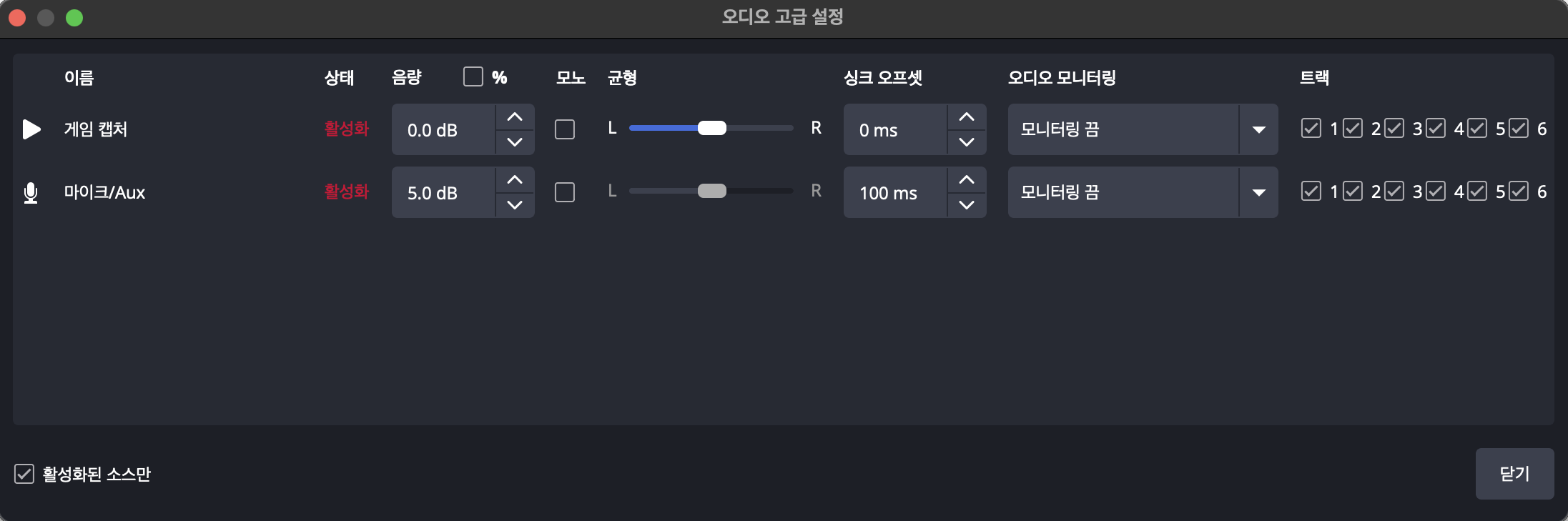 오디오 싱크 | OBS에서 마이크 싱크 오프셋 조정 |