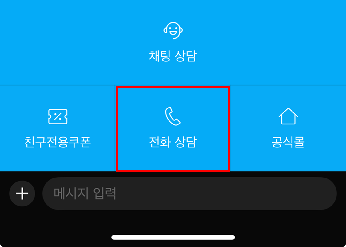 위의 링크로 접속해 주신 후 1:1 대화 선택 > 채팅 상담 혹은 전화 상담을 선택하여 상담이 가능해요. (아래 사진을 참고해 주세요.)