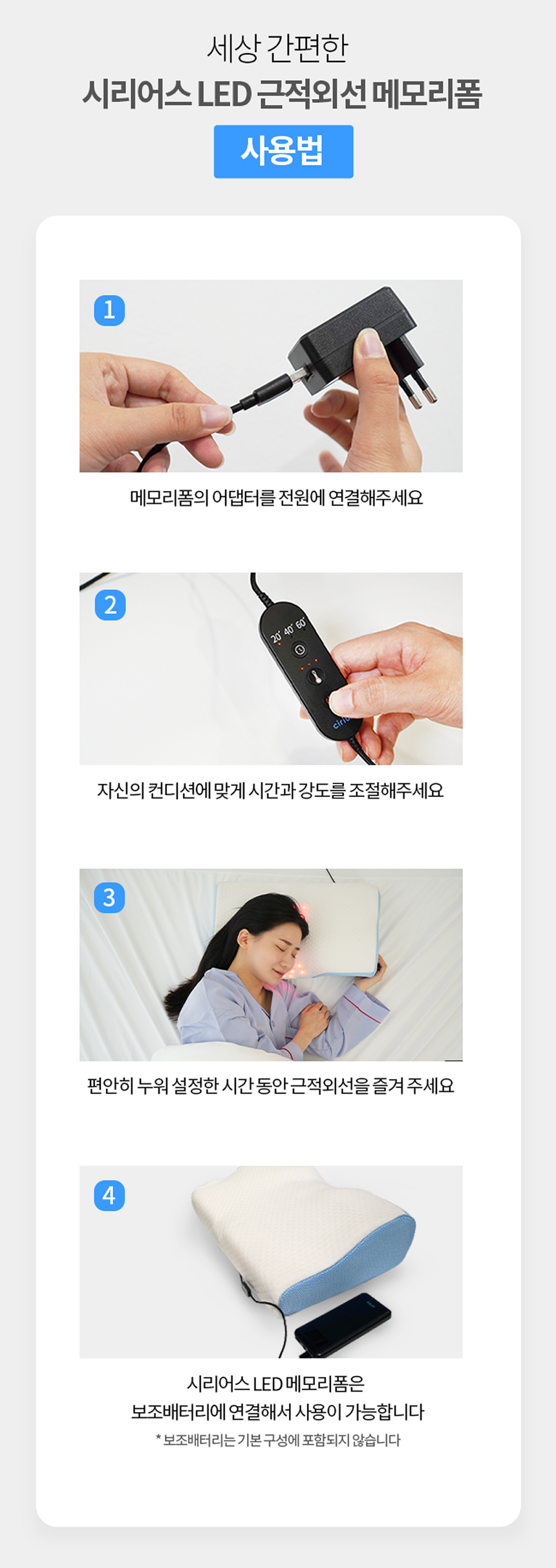 LED 메모리폼 베개 사용 방법을 영상으로 확인해보세요.