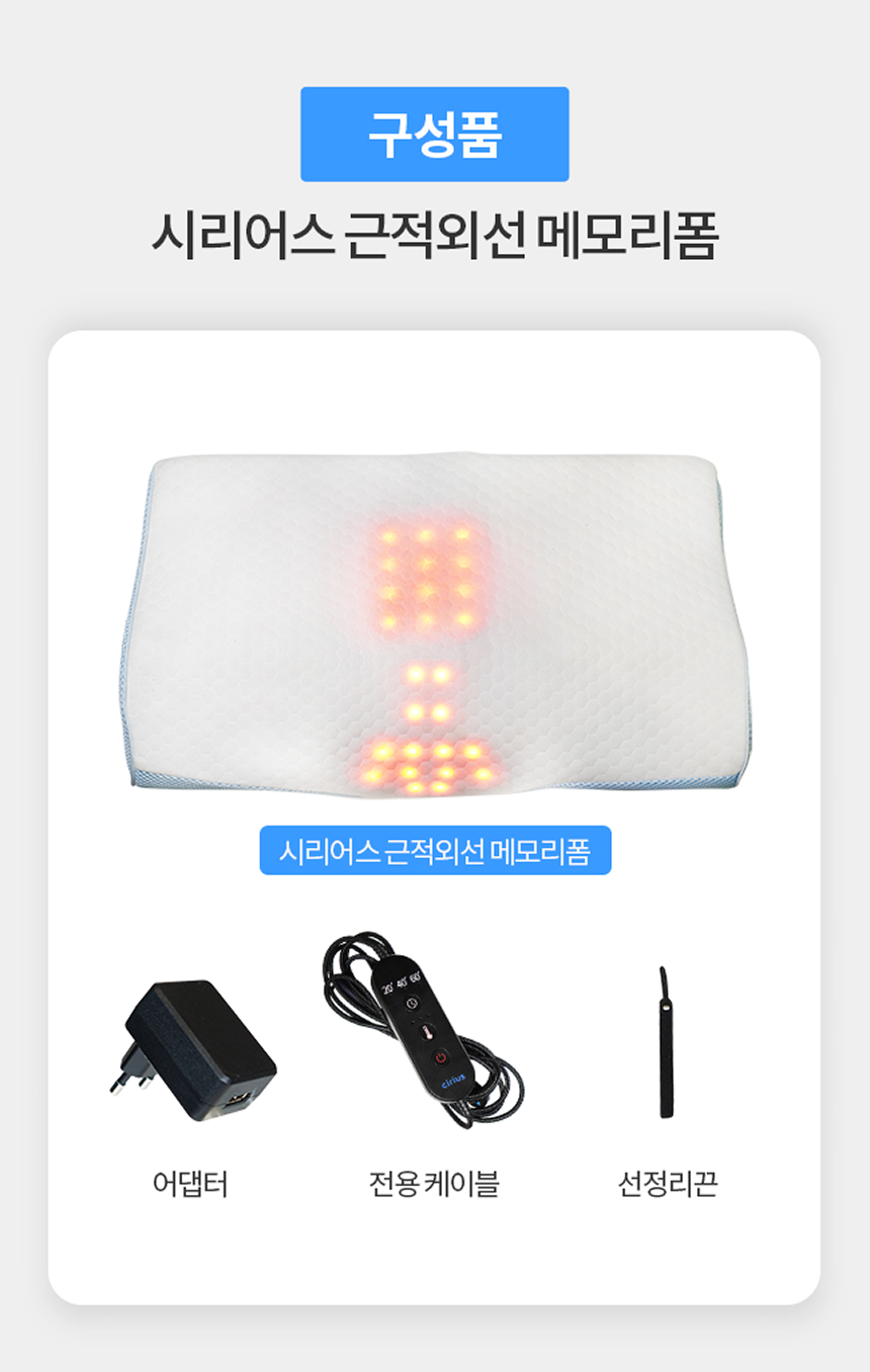 시리어스 LED 넥은 원적외선 대비 12배 깊은 곳까지 침투하는 근적외선을 이용하여 면역력, 피로감, 염증 개선 등에 도움을 주는 제품이에요. 메모리폼 베개에 근적외선 기능이 더해져 수면 시 바른 자세를 만들어주고 모근, 두피 및 목 관리가 가능해요.