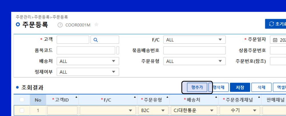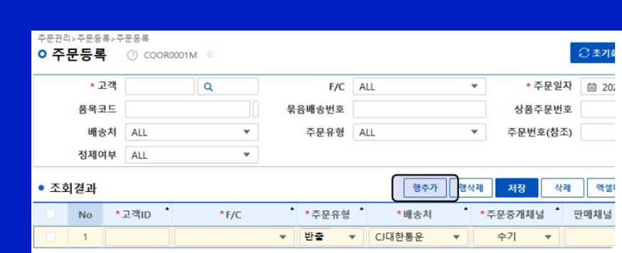 경로 : LoIS eFLEXs 주문관리 주문등록 주문등록