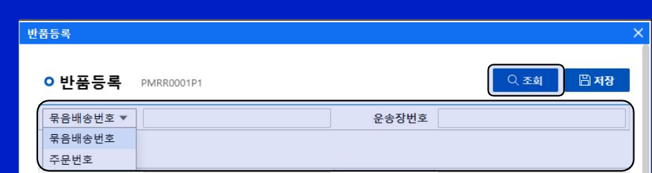 '묶음배송번호', '주문번호', '운송장번호' 중 1개 입력 후, '조회 버튼'을 클릭합니다.
