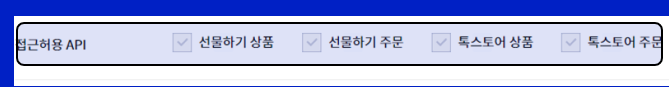 접근허용 API 선물하기 주문 or 톡스토어 주문 체크박스 체크합니다.