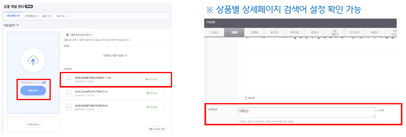 ※ 상품별 상세페이지 검색어 설정 확인 가능 :