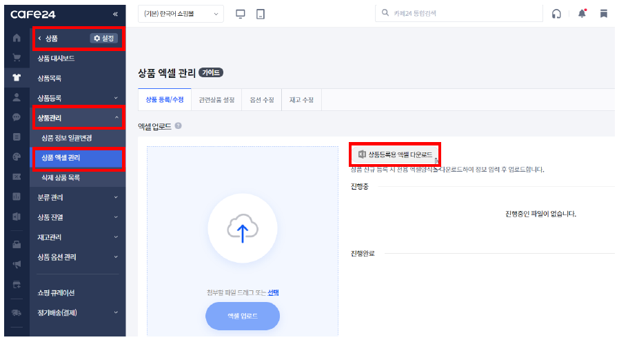 • [상품] - [상품관리] - [상품 엑셀 관리]