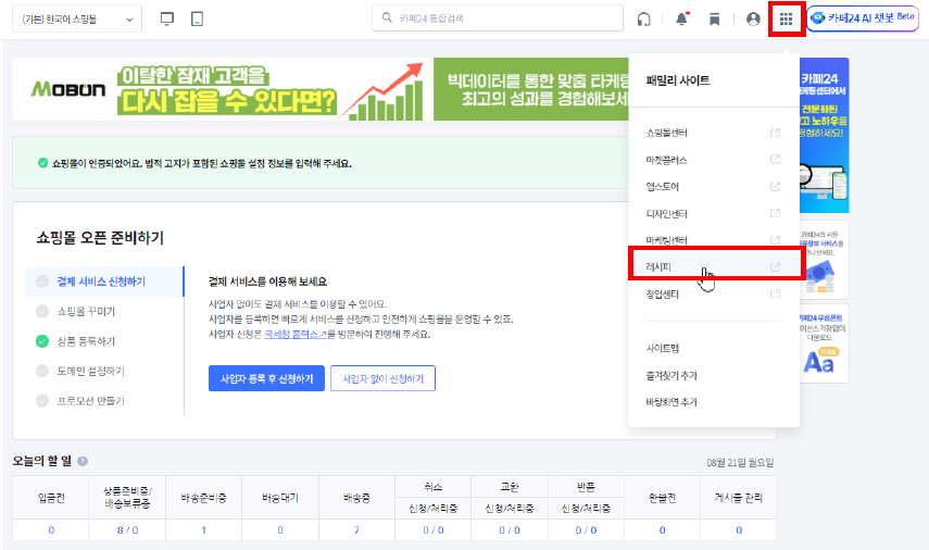 하기 가이드 外, 추가/세부적인 내용 확인 時 CAFE24 공식 가이드 참고
