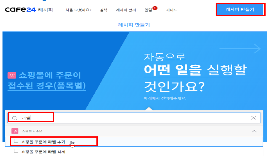• 쇼핑몰 주문에 라벨 추가 > 상품 검색어 "CJ풀필먼트" 레시피 만들기