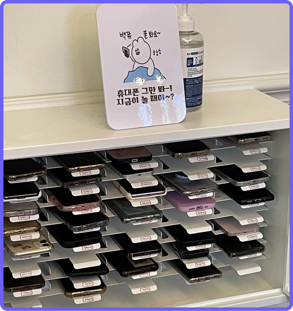 관리형 스터디카페 공부의 민족에서는 등원과 동시에 핸드폰을 제출하고, 허용된 시간 이외에는 가져갈 수 없어요. 학습 사이트 외에는 접속이 불가능하도록 네트워크 차단도 되어있어서 공부에만 집중할 수 있는 환경이랍니다.