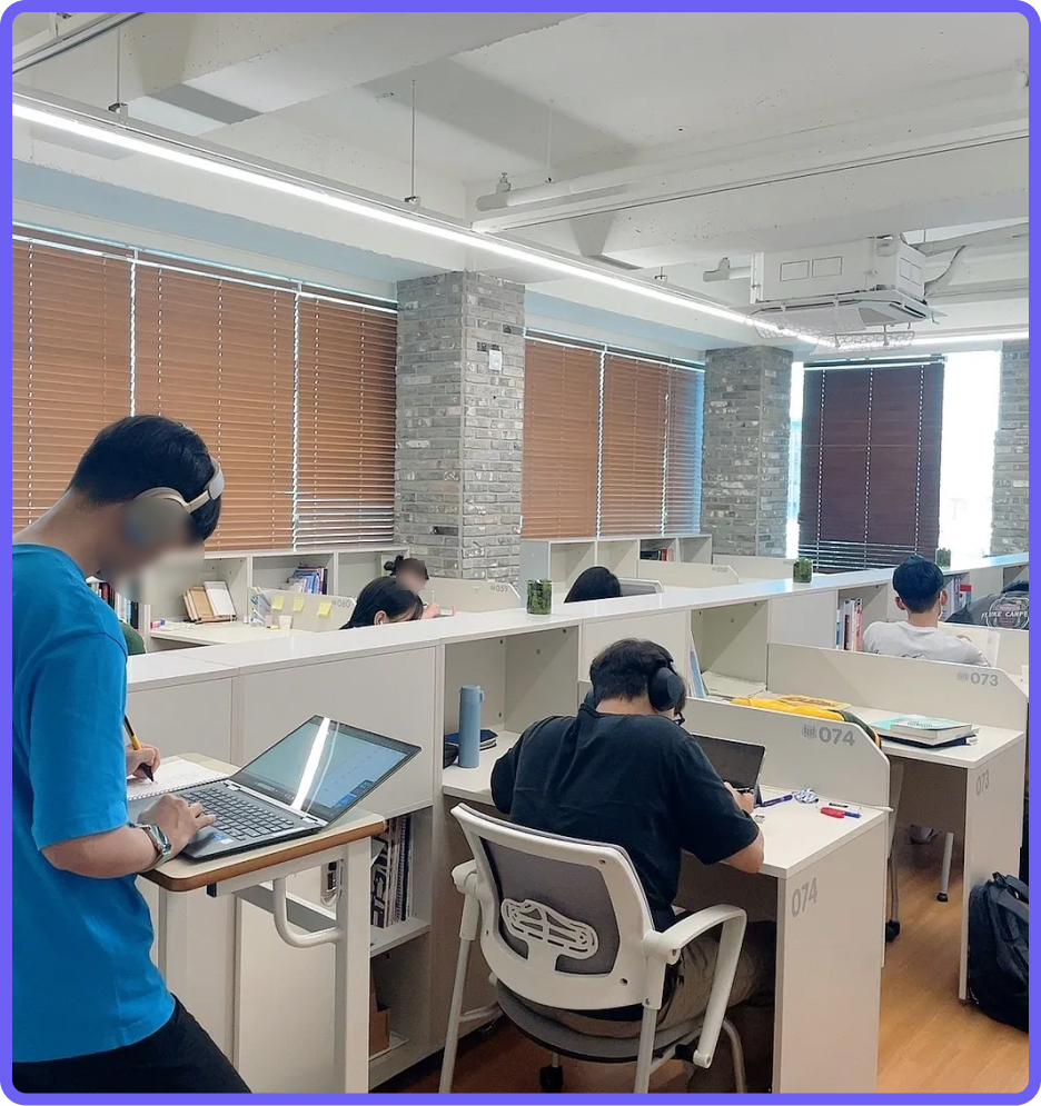 매 교시마다 매니저 및 조교 선생님이 불시 순찰을 진행하여, 회원님들이 졸거나 멍때리는 것까지